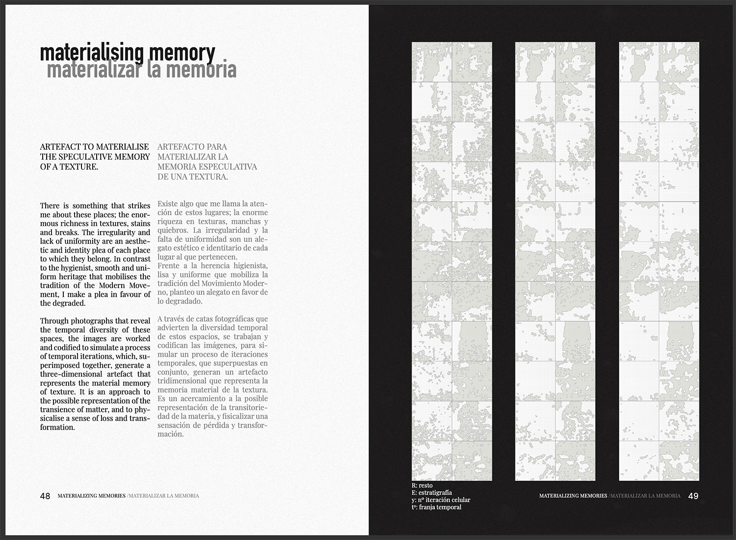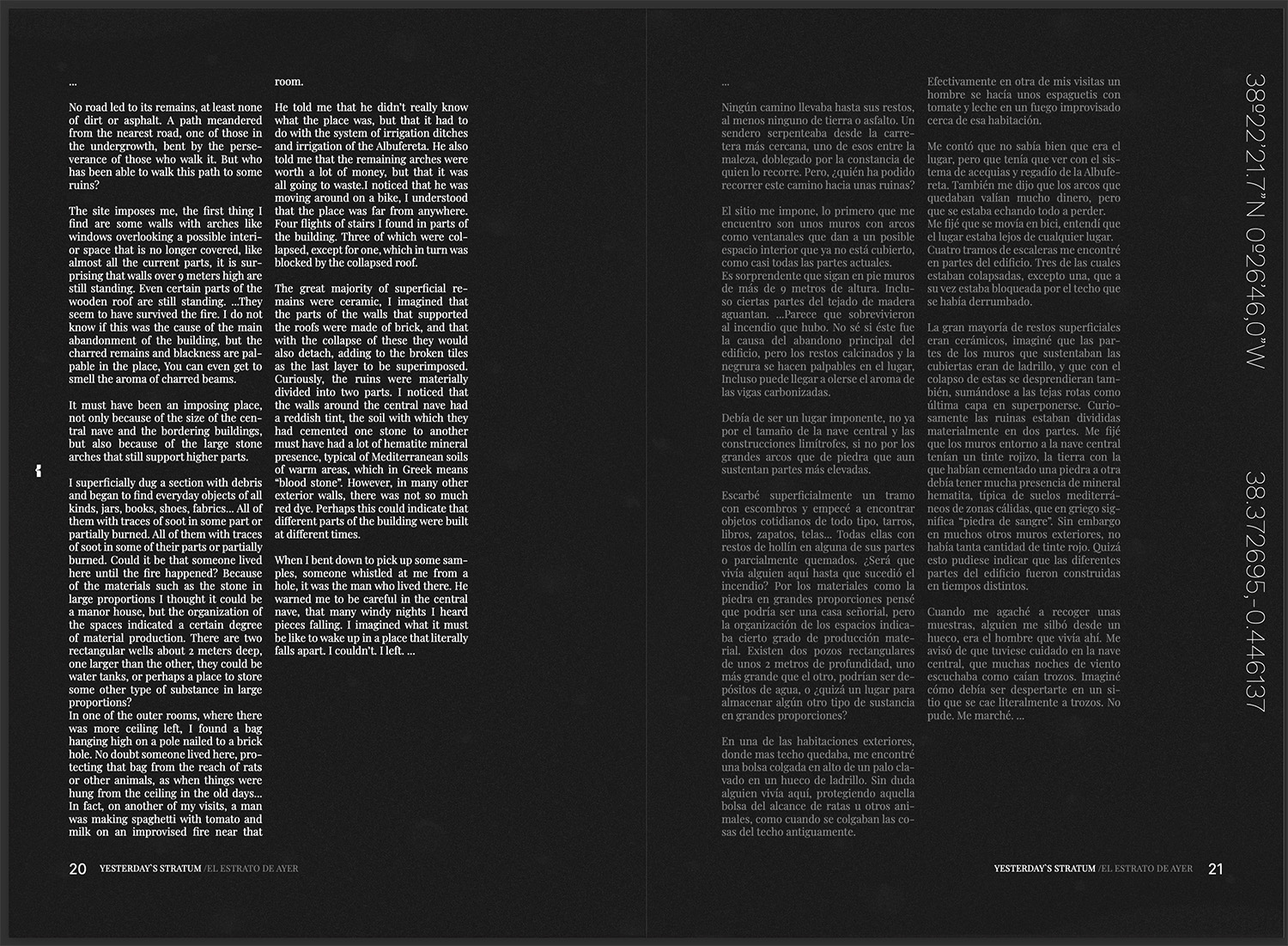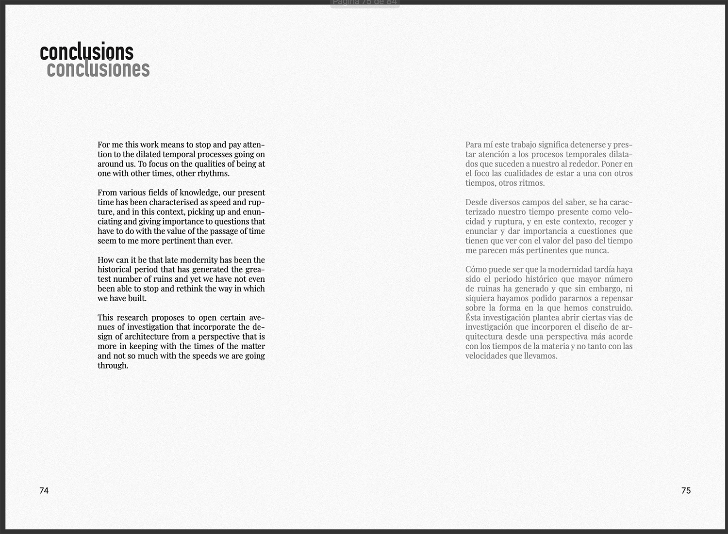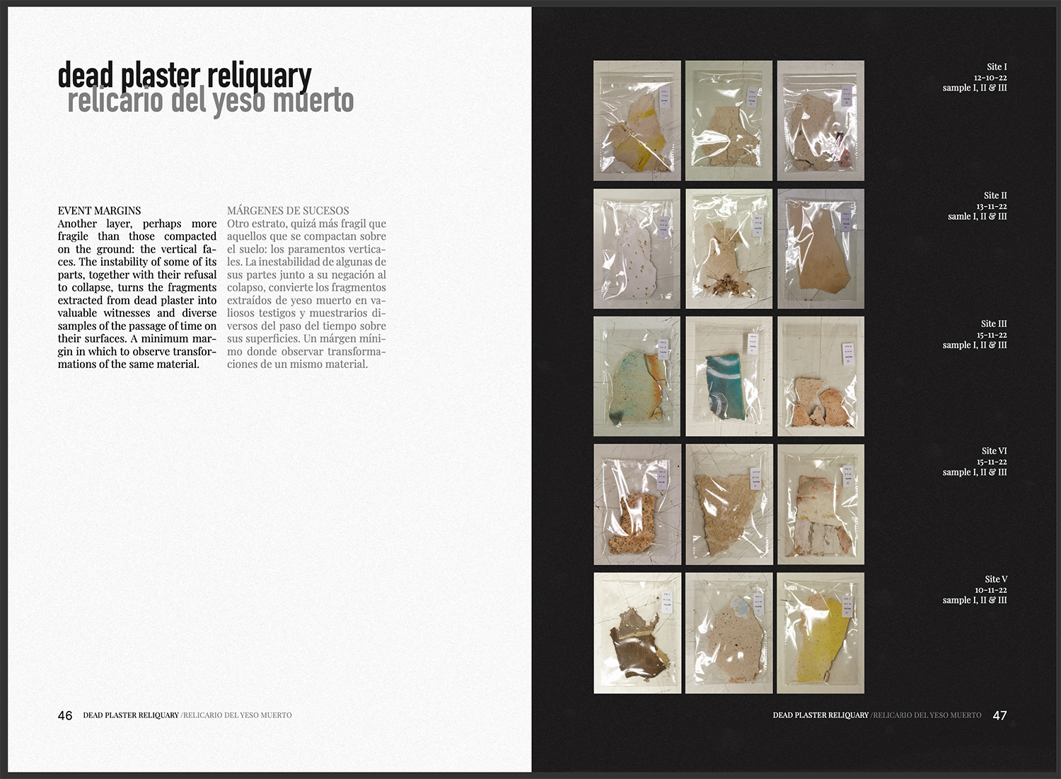 A través de seis enfoques, esta propuesta busca fomentar una mirada distinta, elaborada a fuego lento. Se plantea desde una aproximación sensible a los espacios y materiales en constante degradación, de los cuales considero que pueden extraerse aprendizajes y posibilidades de diseño. Lo que impulsa este trabajo es el interés por los caminos que la ruina nos ofrece, empleando herramientas cercanas a la arqueología contemporánea para generar un imaginario de protocolos operativos con los que, algún día, abordar las urgencias del futuro cercano.